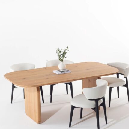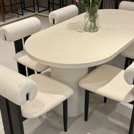 Oval 6 Seater Dining Table & Bouclé Fabric Chairs – Elegant Modern Dining Furniture by Furnhands India