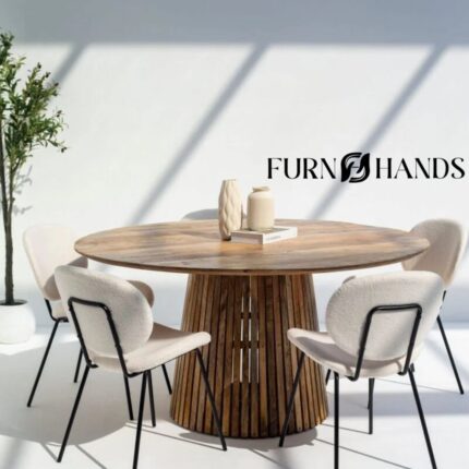 Luxury Round Wooden Dining Table with Handcrafted Cane Base | 5-Star Elegant Design – Furnhands®
