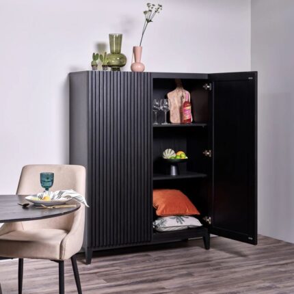 Spacious Black Rattan TV Cabinet with 3 Doors – Ideal for Modern Chandigarh Interiors